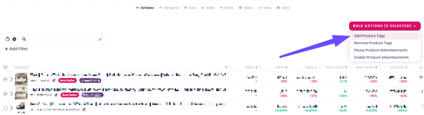 💡 Tip: You can apply multiple tags to a single product. Tags are searchable in all reporting and campaign filters, so they’re great for organizing across teams.